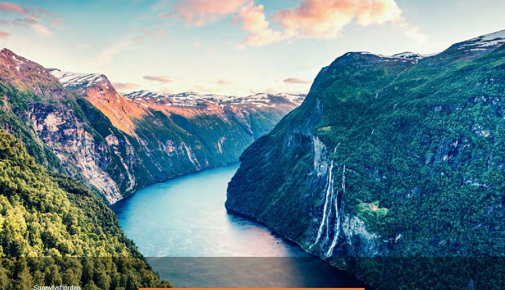 Café da manhã no hotel. Desfrute de uma viagem panorâmica pelo centro da Noruega, partindo em direção a Åndalsnes, passando pela charmosa vila de Dombås. O trajeto oferece vistas impressionantes de vales, flo- restas e dramáticas paisagens montanhosas. De Åndalsnes (parada para almoço – não incluído), continue sua aventura pela icônica estrada Trollstigen, um dos trechos de montanha mais espetaculares da Noruega, com suas curvas fechadas, cascatas e impressionantes miradouros panorâmicos, que levam ao pitoresco vilarejo de Geiranger, situado às margens do mundialmente famoso fiorde de Geiranger. Check-in no hotel, tarde livre e jantar no hotel.